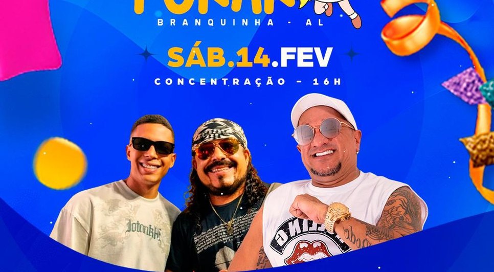 Com dezenas de bloquinhos que já fazem parte do calendário carnavalesco do município, a prefeitura acaba de anunciar a programação completa do Carna Branquinha 2026. Na grade, os foliões também curtirão ao som do Rodo da Bahia e Cajubanda no tradicional Bloco Vou Furar, que acontece no sábado, dia 14.