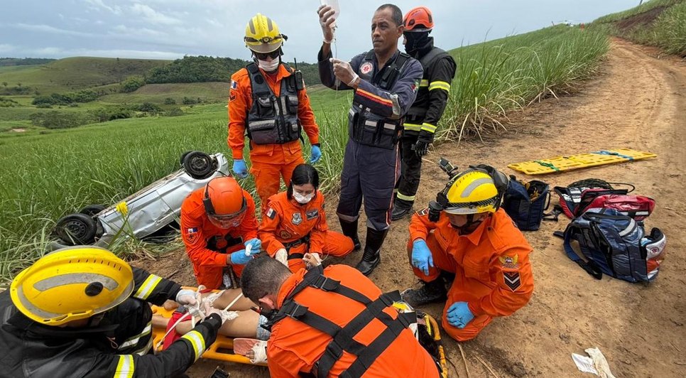 A vítima foi a primeira a ser socorrida, com atendimento realizado pela equipe do helicóptero Falcão 05, do Departamento Estadual de Aviação (DEA), que conseguiu chegar rapidamente ao local do acidente.