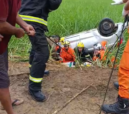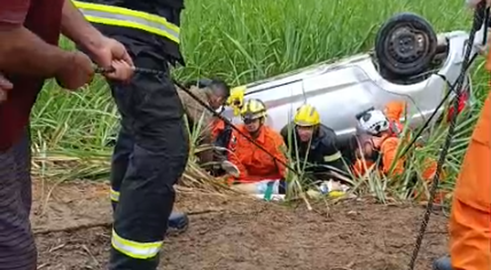 Imagens do resgate de uma mulher de 37 anos, gravemente ferida após um grave acidente em Matriz do Camaragibe, passaram a circular nas redes sociais neste sábado (7). O vídeo mostra o trabalho das equipes de salvamento na retirada da vítima do veículo que capotou e caiu em uma ribanceira em uma estrada vicinal do município, no Norte de Alagoas. No carro também estava um homem de 27 anos, que sofreu apenas ferimentos leves.