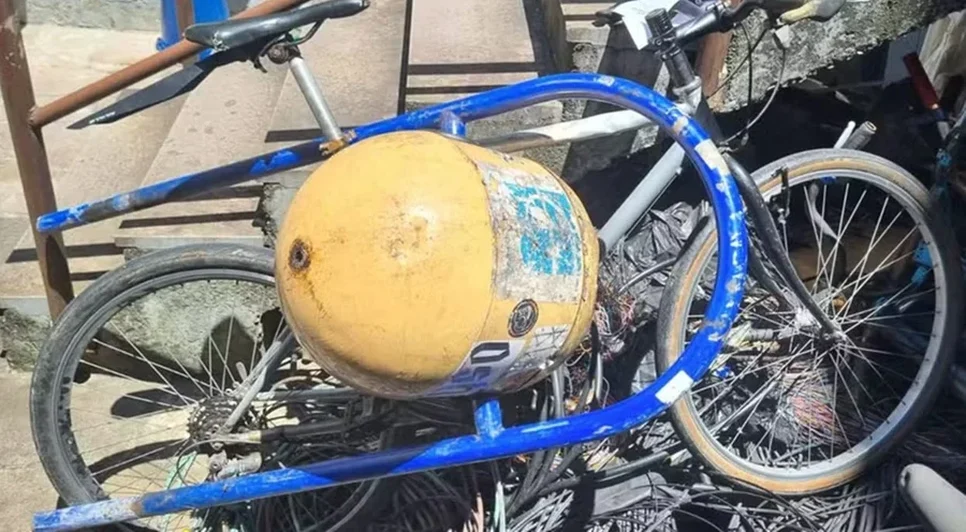 O caso aconteceu em um local com grande movimentação de pessoas, quando o suspeito tentou levar uma bicicleta que estava estacionada no suporte onde a lixeira ficava instalada.