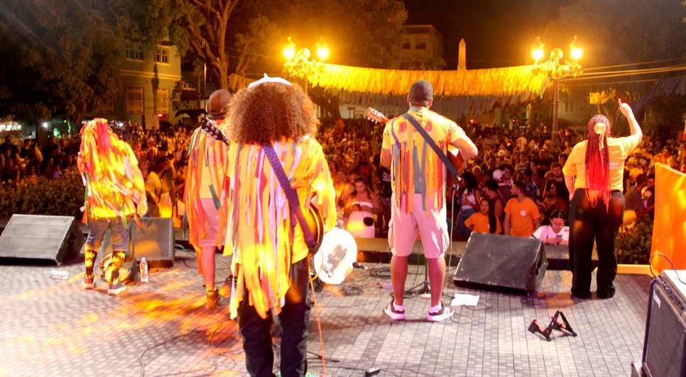 Nesta segunda-feira (16), o destaque é para as apresentações das bandas afro Afoxé, Oyá Mesan e Afro Zumbi, reforçando a presença da cultura negra na programação. A partir das 20h, o público acompanha shows de Mistura de Raça, Guig do Ben e Som de Vinil, com intervenções da Orquestra Frevo Alegria.