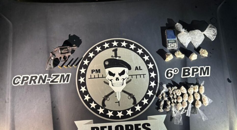 Durante a abordagem, os policiais apreenderam um revólver calibre 38 e uma mochila com mais de 400 porções de crack e maconha.