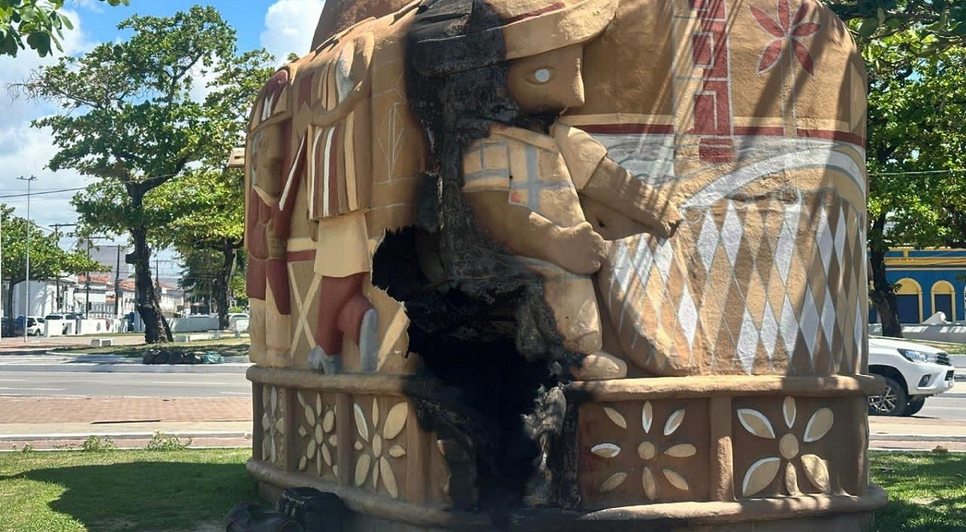 Câmeras registram momento em que escultura “O Boi” é incendiada em Maceió