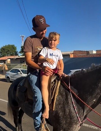 Um vídeo viralizou nas redes sociais mostrando a pequena Eloah Camile, de apenas seis anos, super feliz por ser buscada pelo seu padrasto, o "tio Léo", na escola de cavalo.