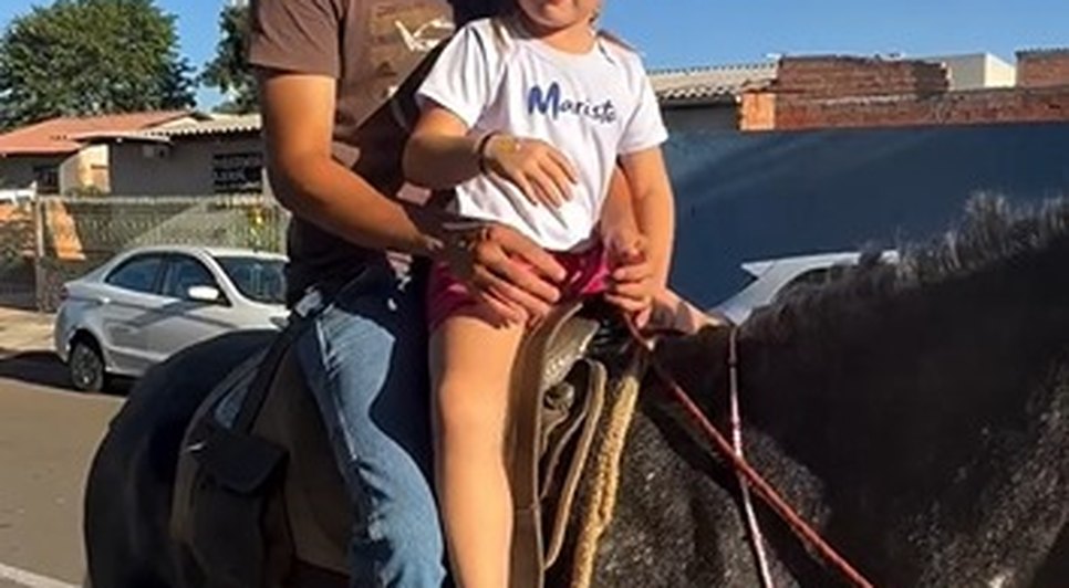 Menina é buscada na escola de cavalo pelo padrasto e encanta com sua alegria