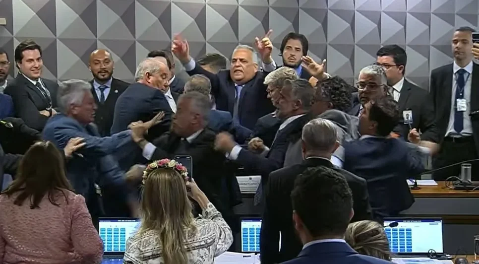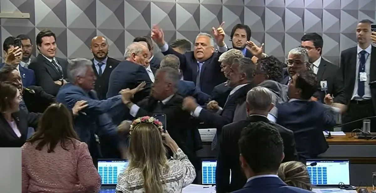 A sessão da CPMI do INSS foi suspensa, na manhã desta quinta-feira (26), após bate-boca, empurrões e troca de socos entre parlamentares.