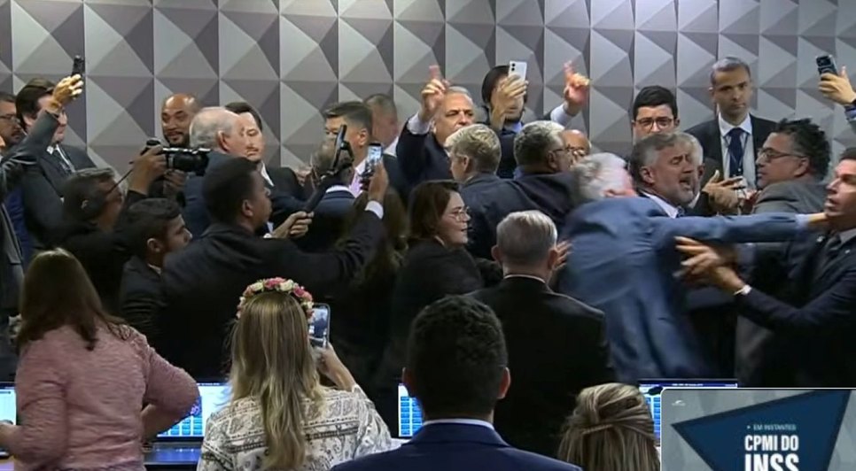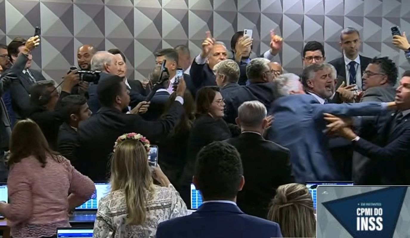 Vídeo mostra outro ângulo da confusão entre parlamentares na CPMI do INSS