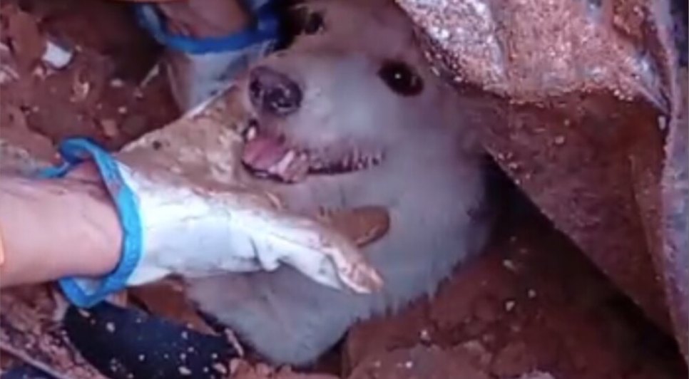 Toda vida importa: Corpo de Bombeiros resgata cãozinho "Pumba" de escombros