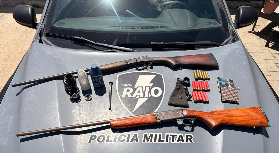 A Polícia Militar de Alagoas, por meio da Companhia de Raio, apreendeu duas armas de fogo e diversos materiais bélicos na manhã deste domingo (8) em Maceió. O flagrante ocorreu em uma área de mata no Conjunto Selma Bandeira, no bairro Benedito Bentes.