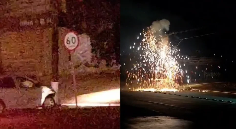 De acordo com imagens registradas no local, o condutor apresentava sinais de embriaguez e colidiu contra o poste, que permaneceu instável após o impacto. O motorista só deixou o local após ocorrer uma explosão no ponto de impacto.