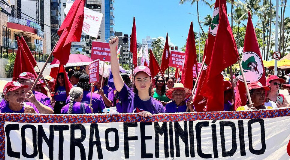 Uma das lideranças presentes foi a vereadora Teca Nelma (PT), que utilizou o carro de som que passava na avenida à beira-mar para fazer um discurso enfático contra o feminicídio e a violência contra mulheres e meninas. Para a vereadora, esta é a pauta mais urgente: “Avançamos muito no último século no sentido de direitos civis e sociais para as mulheres, mas a violência de gênero é algo presente e crescente na sociedade, é preciso enfrentá-la com toda nossa energia. No ano passado, mais de 1.500 mulheres foram vítimas de feminicídio no Brasil, é um número assustador, não podemos mais permitir isso” declarou a vereadora.