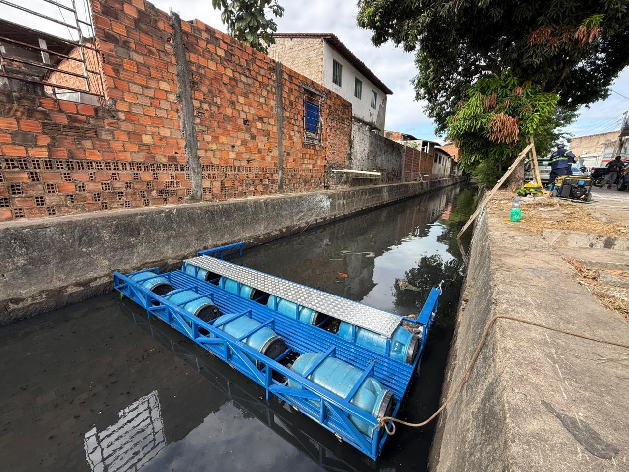 As ecobarreiras começaram a ser instaladas na última quinta-feira (5) e tiveram a implantação concluída no sábado (7). Os equipamentos foram colocados nos canais do Sapo e Gulandi, além de dois pontos do Riacho Salgadinho, como parte das ações ambientais previstas para a região.