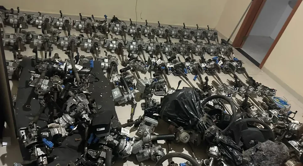 Ao entrarem no imóvel, as equipes localizaram diversas peças de veículos, entre elas motores automotivos, câmbios de direção e várias placas de veículos. Algumas dessas placas possuíam registro de queixa de roubo. No local também foi encontrado o veículo Volkswagen Tera, de cor preta, pertencente à empresa Movida. Segundo a polícia, o carro havia sido tomado em assalto na cidade de Paudalho, em Pernambuco.