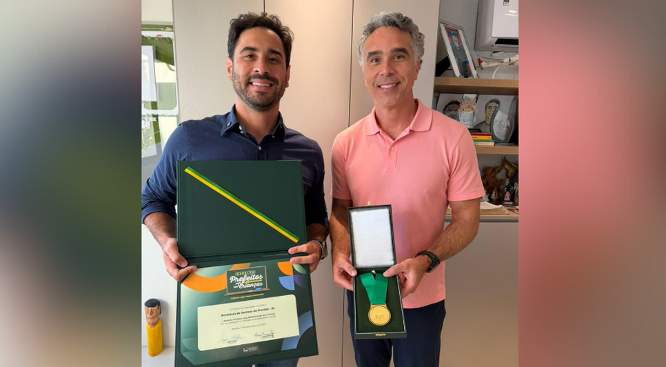 Nesta quarta-feira (11), o prefeito André Castro recebeu das mãos do deputado federal, Rafael Brito, a medalha ‘Prefeitos pela Alfabetização das Crianças’. Destinada a 78 municípios brasileiros que se destacaram no combate ao analfabetismo escolar, em Alagoas, apenas Santana do Mundaú e mais dois municípios foram agraciados com a honraria concedida pea Câmara dos Deputados.