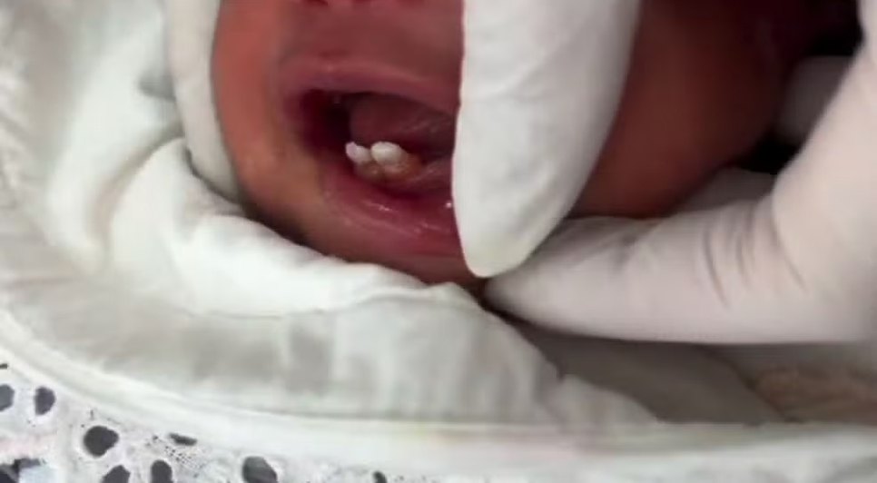 Bebê nasce com dentes e passa por procedimento aos seis dias de vida