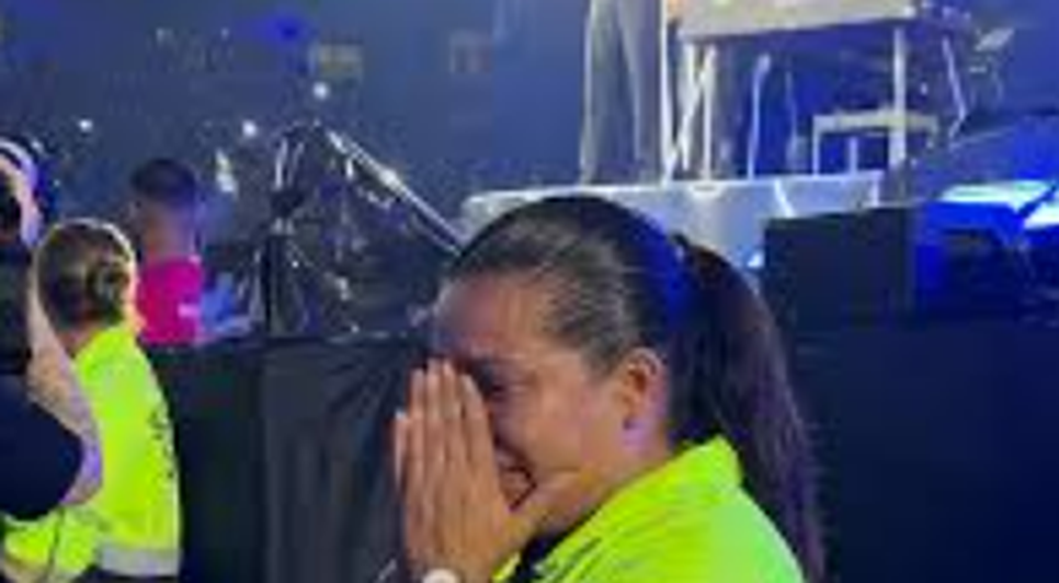 Enquanto trabalhava durante show de Luan Santana, mulher se emociona ao lembrar de marido que morreu há cinco meses