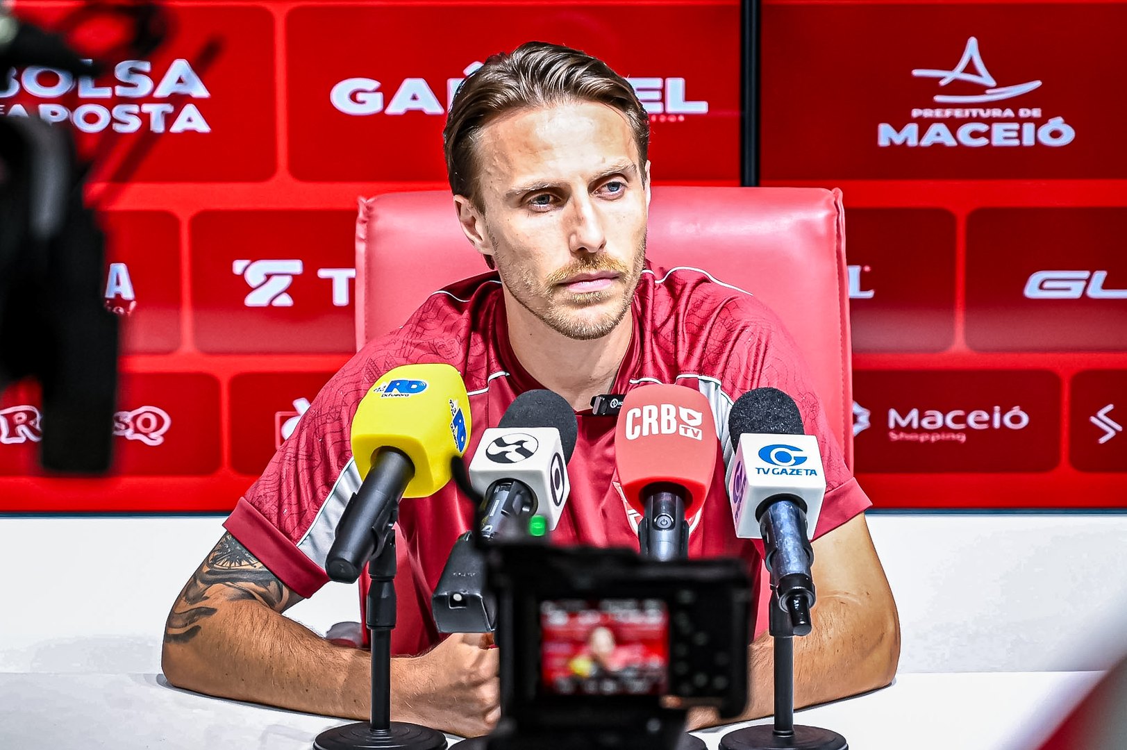 Recém-chegado ao CRB, o zagueiro Bressan foi o escolhido para conceder entrevista coletiva nesta segunda-feira (16), no CT do clube. Com apenas quatro jogos disputados e um gol marcado desde que chegou ao Galo em 2026, o defensor comentou sobre o início de trajetória com a camisa regatiana e destacou as expectativas para a sequência da temporada.