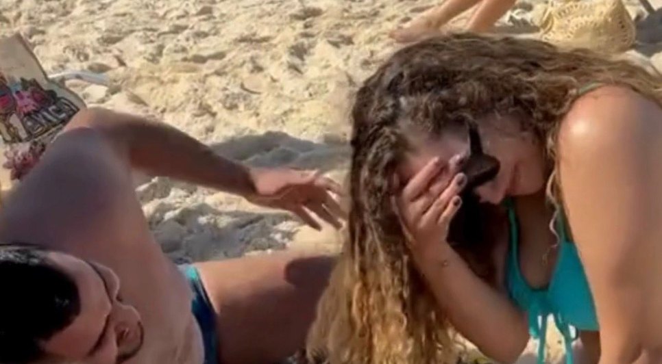 Pedido de casamento inusitado: homem finge ataque na praia para fazer surpresa à namorada