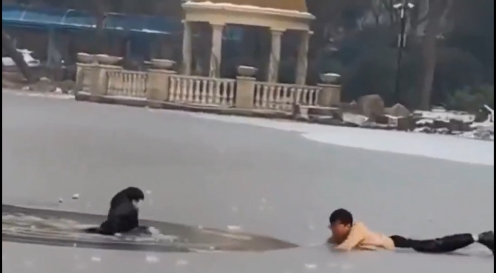Um homem resgatou uma criança que caiu em um lago congelado na cidade de Luoyang, na província de Henan, na China. O caso aconteceu durante o inverno, quando o menino brincava sobre o gelo e a superfície cedeu.