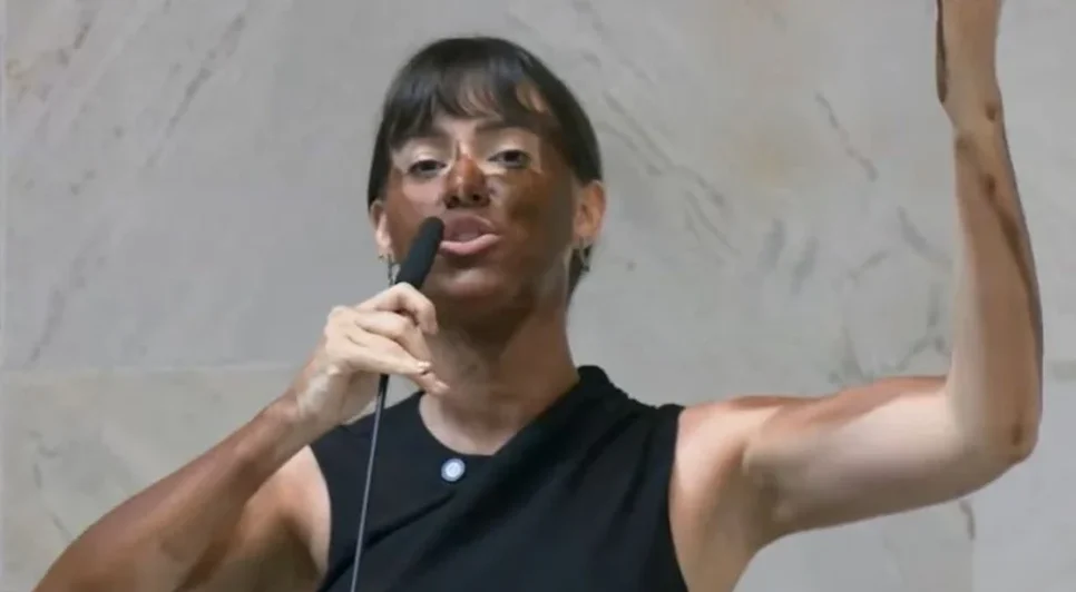 O episódio ganhou ainda mais repercussão após Fabiana aparecer com o rosto e parte do corpo pintados de marrom no plenário da Alesp. A manifestação foi uma crítica direta à eleição de Erika Hilton para a presidência da Comissão dos Direitos da Mulher na Câmara dos Deputados. Durante o discurso, a deputada estadual afirmou que a escolha de uma mulher trans para o cargo “retira o espaço de fala de uma mulher”, declaração que gerou forte reação de parlamentares e nas redes sociais.