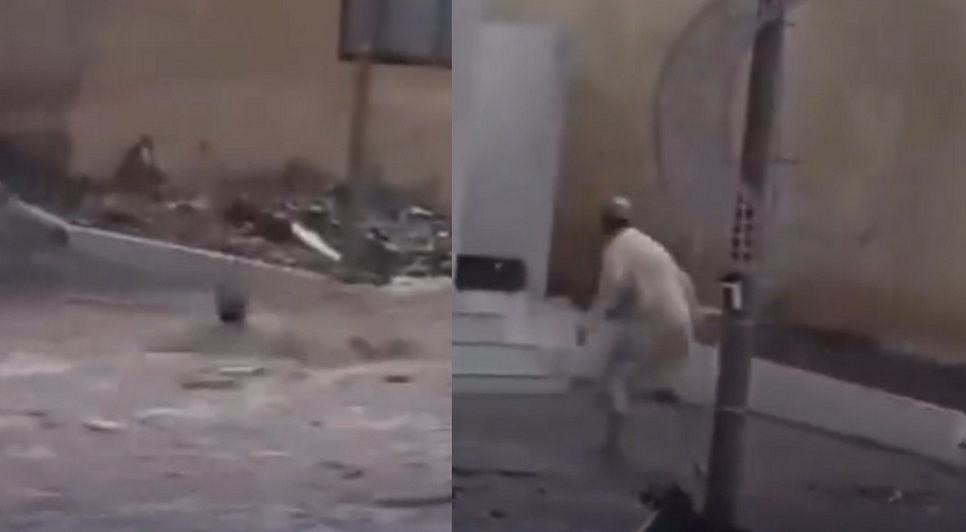 Um gato foi resgatado após ser arrastado por uma forte correnteza durante uma enchente provocada por chuvas intensas, neste sábado (21), em Omã. O animal tentava se manter à tona enquanto a água avançava rapidamente pelas ruas alagadas.