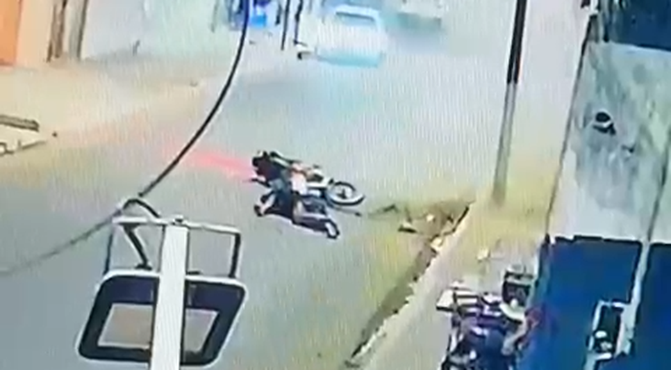 As imagens registradas por câmeras de segurança mostram o momento em que o homem trafega em alta velocidade e, ao passar por um quebra-molas, perde o controle da moto e cai na via.