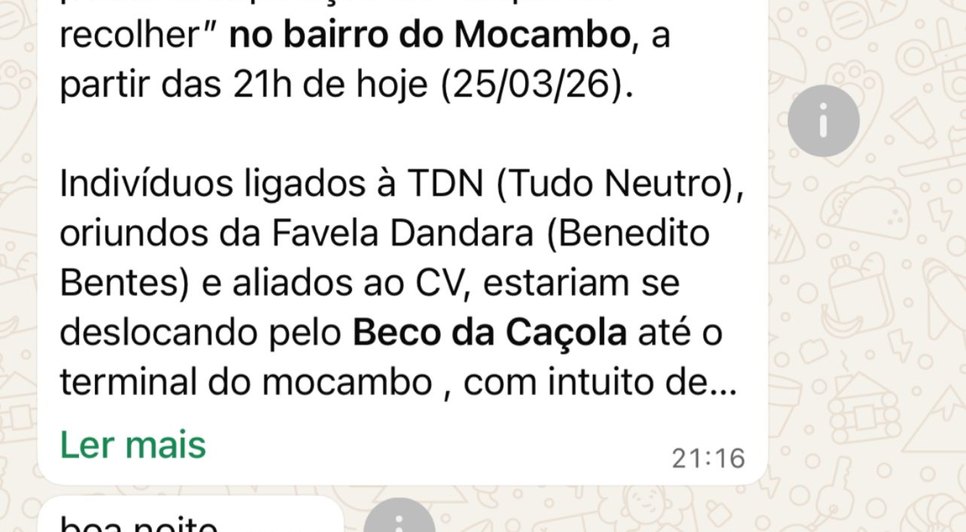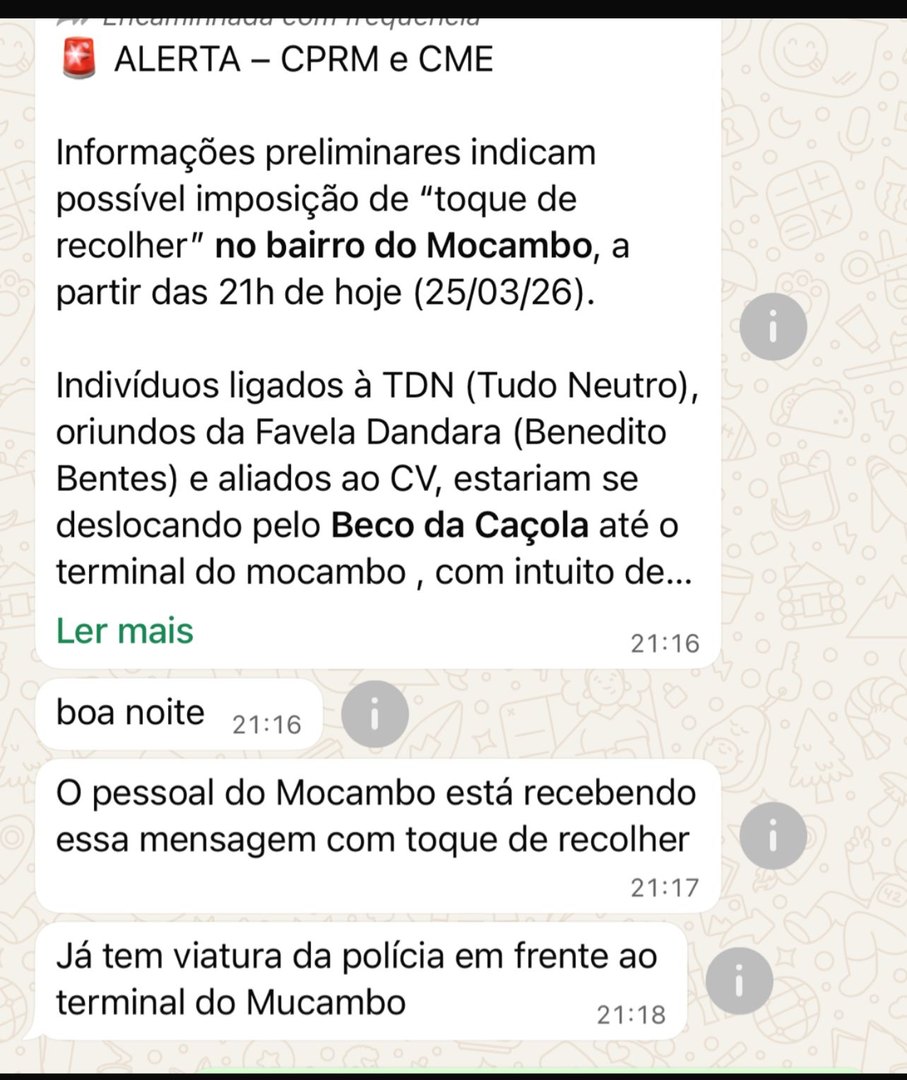 Segundo relatos de moradores, a mensagem começou a se espalhar rapidamente e gerou preocupação. Há também informações de presença de viaturas policiais nas proximidades do terminal do bairro.