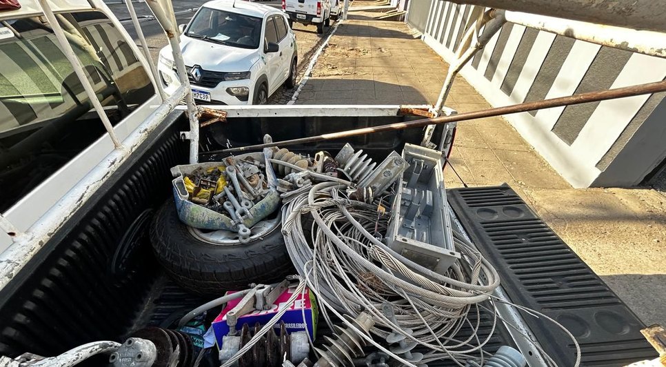 Com o suspeito, foram encontrados equipamentos pertencentes à rede de energia elétrica. De acordo com a investigação, os materiais são da concessionária Equatorial Alagoas e a origem irregular foi confirmada por laudo técnico.