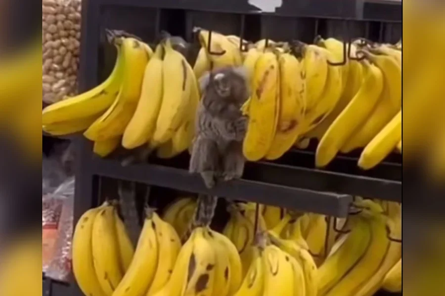 Uma cena inusitada chamou a atenção de clientes em um supermercado de Cachoeiro de Itapemirim, no sul do Espírito Santo. Dois macacos da espécie sagui foram flagrados dentro do estabelecimento se alimentando na seção de hortifruti.