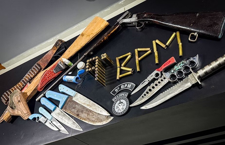 Durante a abordagem, o homem entregou espontaneamente a arma e os materiais. No local, foram apreendidos uma espingarda da marca CBC calibre .36, além de diversas munições, entre cartuchos intactos e já utilizados, somando dezenas de unidades.