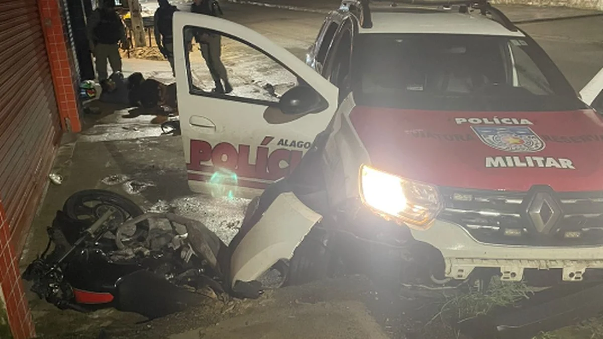 Suspeitos de tráfico tentam fugir em moto e batem em viatura policial em Maceió