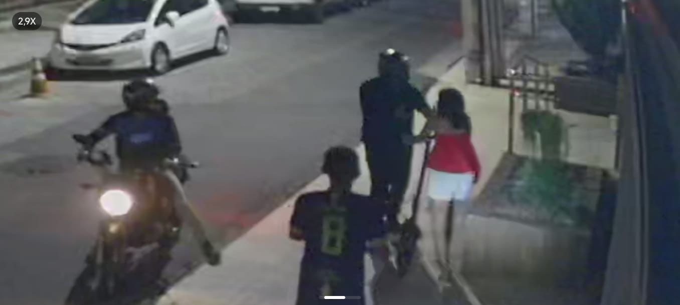 Imagens de câmeras de monitoramento registraram o momento em que duas crianças foram abordadas por dois criminosos enquanto andavam de patinete. O crime ocorreu por volta das 19h37 desta quarta-feira (8), nas proximidades do corredor Vera Arruda, em Maceió, Alagoas.