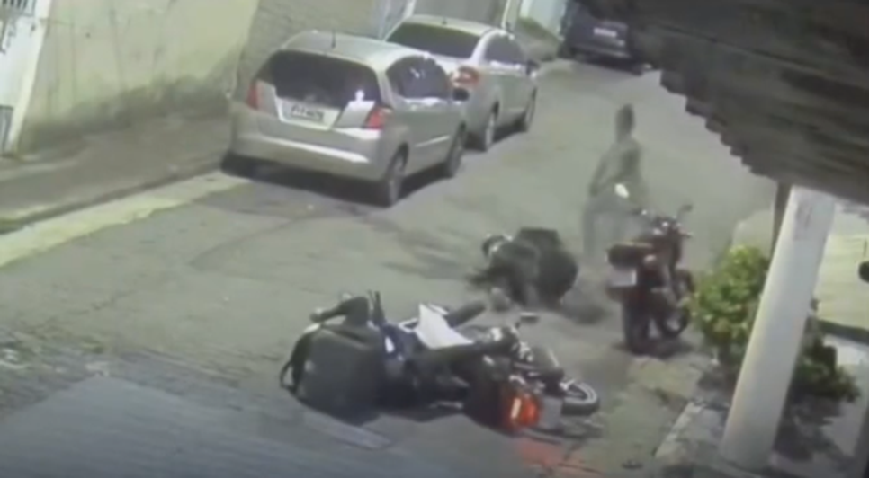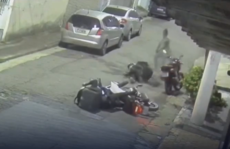 As imagens mostram duas motocicletas retornando ao perceberem a mulher caminhando sozinha. Ao ser abordada, ela levanta as mãos e entrega o que foi exigido. Em seguida, ao abrir a mochila, a policial saca uma pistola e efetua ao menos sete disparos contra a dupla.