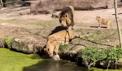 Quem manda na selva! Leoa viraliza ao salvar filhote de afogamento e emociona web