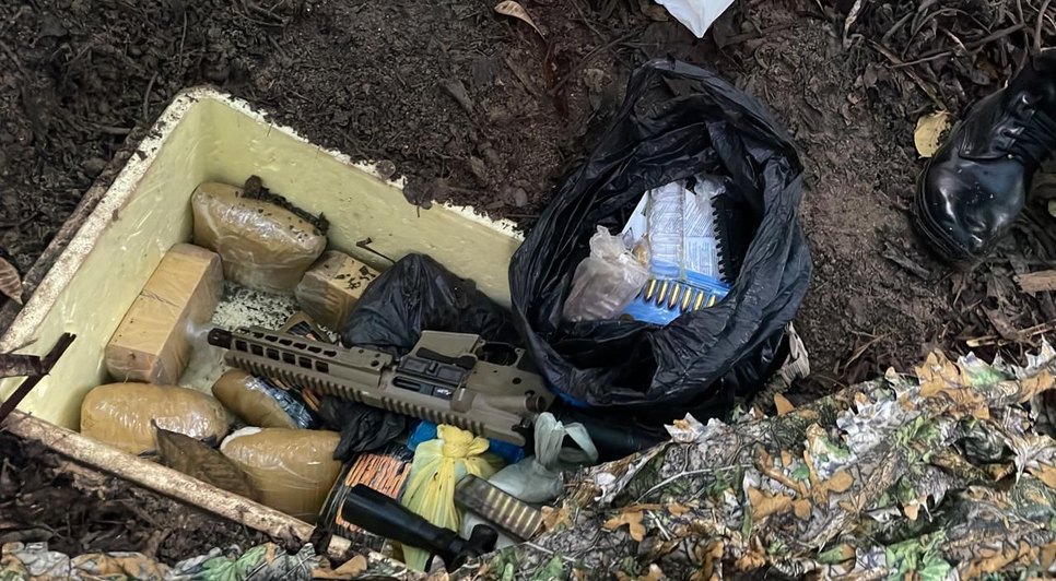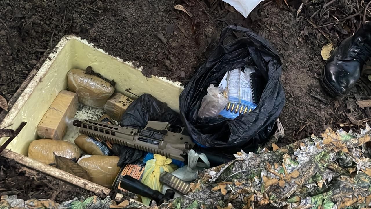 Durante a operação, foram apreendidos uma carabina calibre 9mm, munições e entorpecentes.