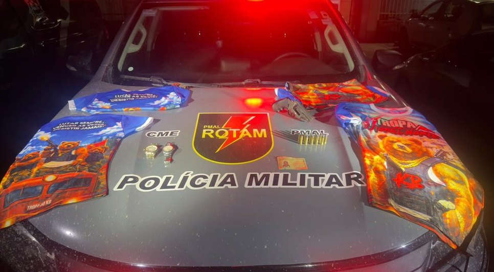 Na noite de quinta-feira (16), equipes da Ronda Ostensiva Tática Motorizada (Rotam) apreenderam arma, munições e materiais com símbolos alusivos a uma possível organização criminosa ligada ao Comando Vermelho, em São Miguel dos Milagres.A ação ocorreu durante a Operação Nexus, após levantamentos de inteligência indicarem a atuação de um indivíduo que estaria comercializando entorpecentes em um bar no Sítio Areias, zona rural do município. As informações são da Secretaria de Segurança Pública de Alagoas.
