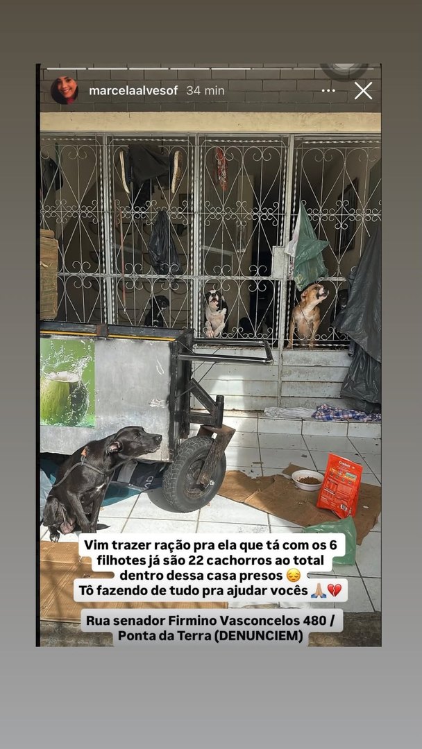 Ainda segundo o relato, quando conseguem sair do imóvel, os cães estariam atacando e matando gatos na rua, possivelmente por fome.