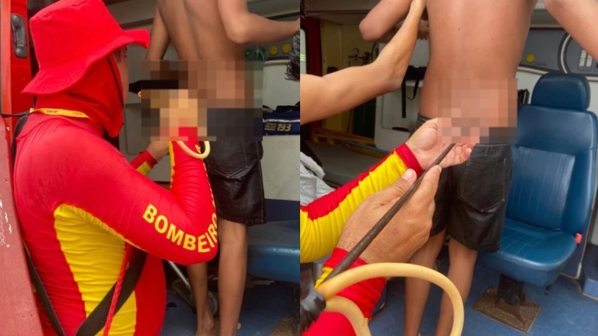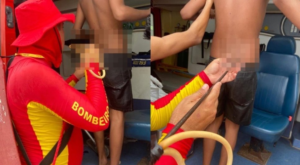 De acordo com os bombeiros, outro adolescente da mesma idade manuseava o equipamento de pesca e acabou atingindo o amigo na região lombar. Os dois estavam no mar sem a supervisão de um adulto responsável no momento do acidente.