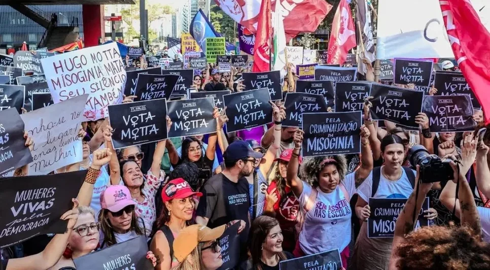 Na sexta-feira (24), o presidente da Câmara, Hugo Motta (Republicanos), criou um grupo de trabalho para analisar o texto. A proposta prevê equiparar a misoginia ao crime de racismo. O projeto já foi aprovado pelo Senado e agora aguarda votação na Câmara.