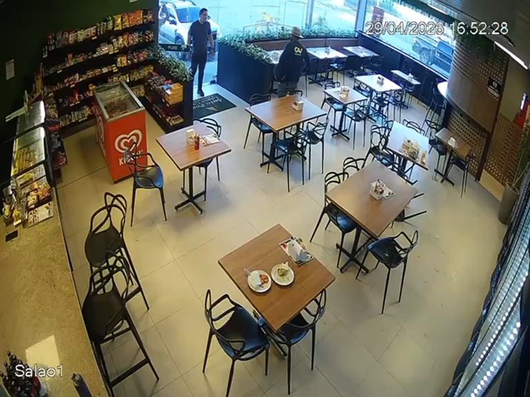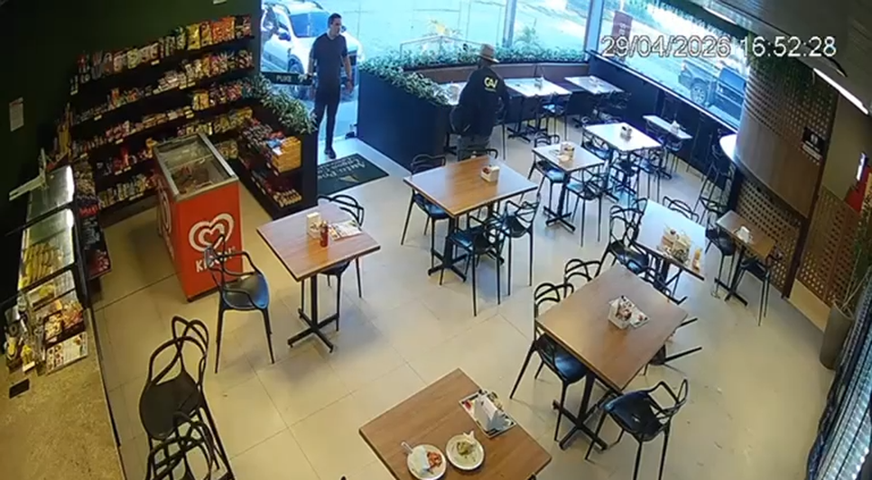 Câmeras de segurança flagraram um assalto dentro de uma conveniência de posto de combustíveis no bairro Massagueira, em Marechal Deodoro, na quarta-feira (29). Nas imagens, um policial civil aparece sendo surpreendido por um homem enquanto estava no local acompanhado de uma criança.