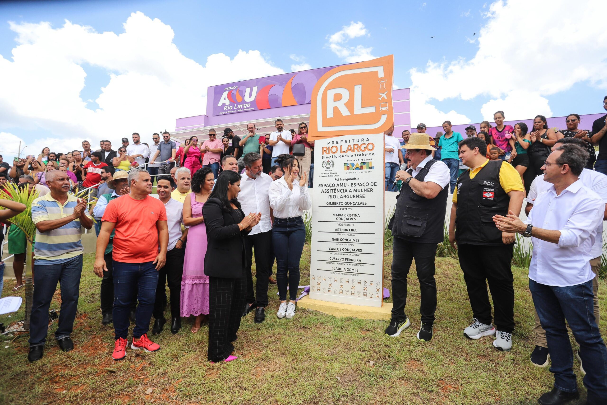 Dando seguimento às solenidades, a cerimônia seguiu para o bairro da parte central de Rio Largo, onde foram assinadas Ordens de Serviço (OS) para obras de construção de sete novas quadras poliesportivas, pavimentação asfáltica de todo o Centro da Cidade, da Rua Nossa Srª de Fátima, da obra de drenagem e pavimentação do corredor de transporte de Lourenço de Albuquerque via destilaria, além da grande inauguração do Espaço de Assistência à Mulher de Rio Largo (AMU), um centro pioneiro em Alagoas, oferecendo atendimento multidisciplinar à todas as mulheres da região.