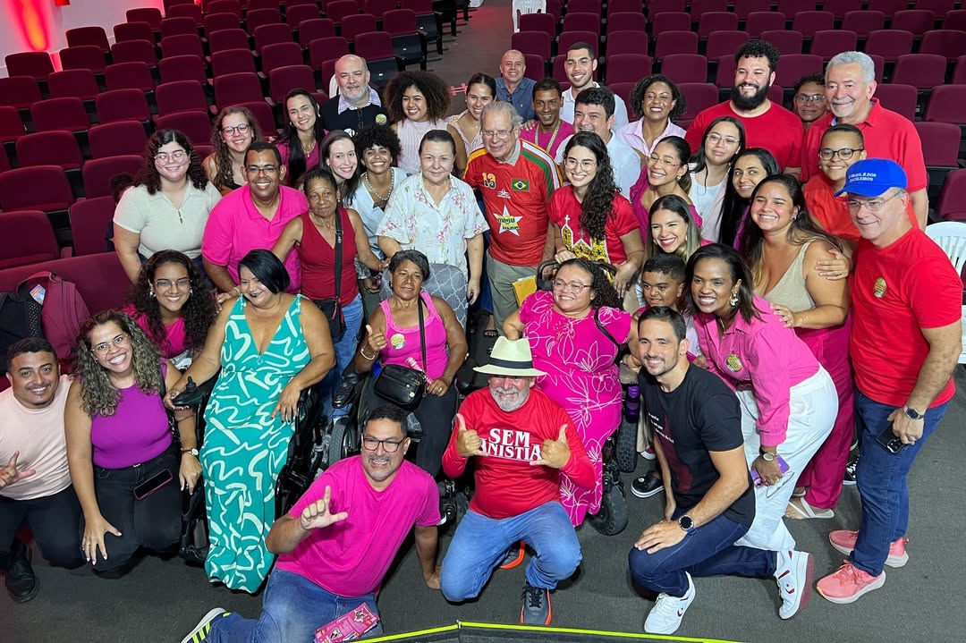 O Partido dos Trabalhadores (PT) de Alagoas promoveu um evento em alusão ao dia 8 de janeiro em Maceió, nesta quinta-feira (08), com a presença de lideranças nacionais como Zé Dirceu, o deputado federal Paulão, o deputado Ronaldo Medeiros e a vereadora da capital alagoana, Teca Nelma. Durante o encontro, os parlarmentares e apoiadores entoaram palavras de ordem como “Sem Anistia” e “Resistir é preciso”.